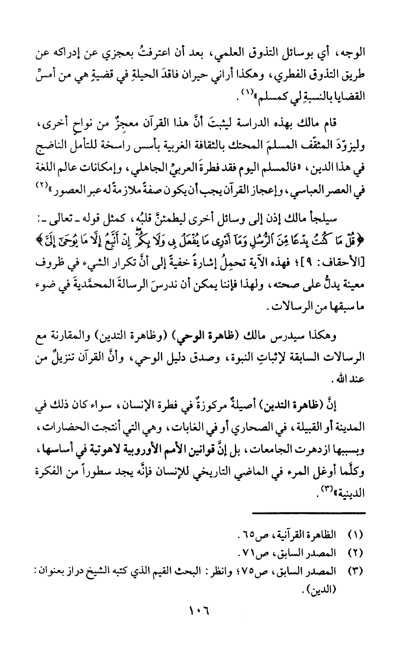 وهكذا سيدرس مالك (ظاهرة الوحي) (وظاهرة التدين) والمقارنة مع