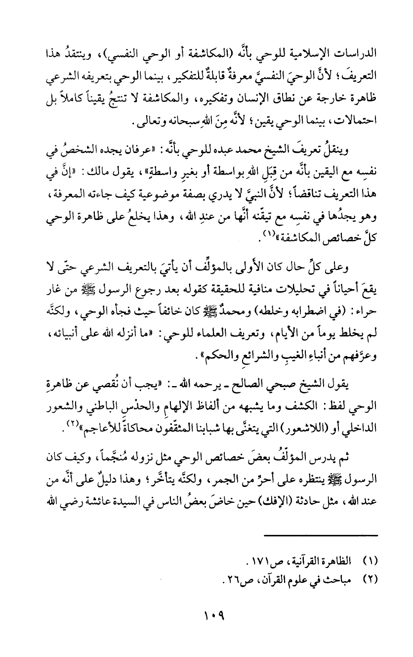 وينقلُ تعريفَ الشيخ محمد عبده للوحي بأئه: ((عرفان يجده الشخصُ في