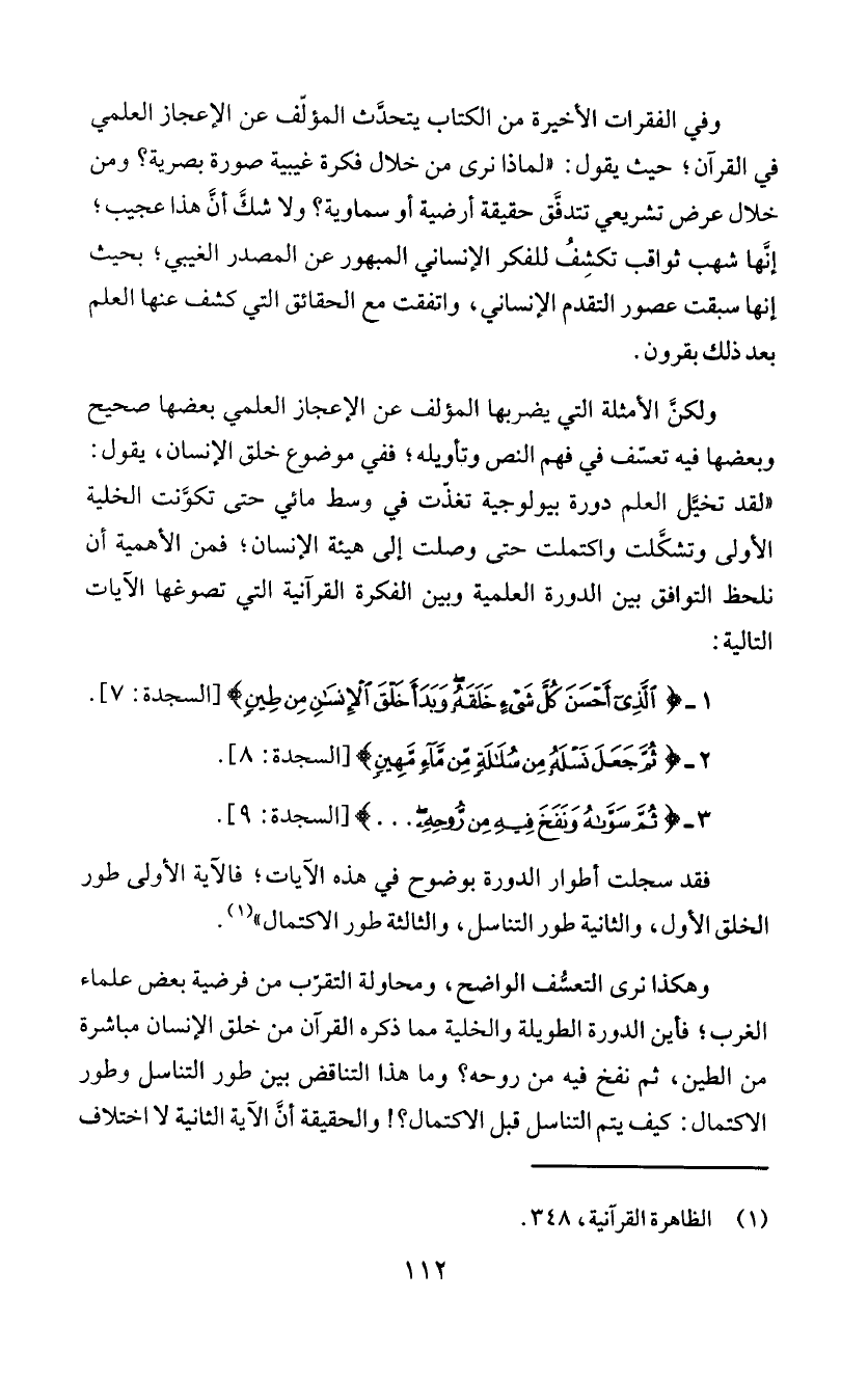 وفي الفقرات الأخيرة من الكتاب يتحذَث المؤلّف عن الإعجاز العلمي