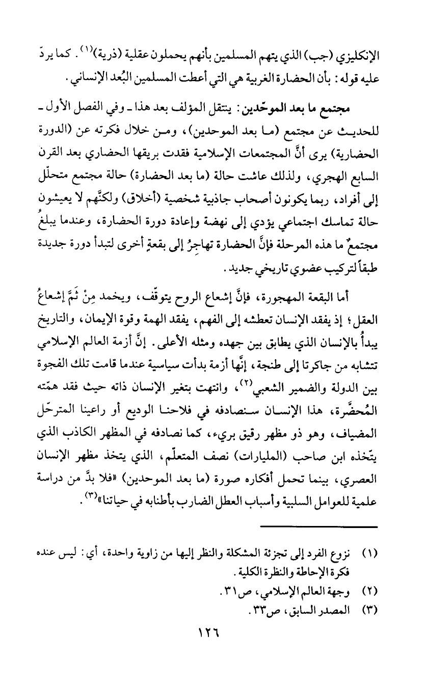 الإنكليزي (جب) الذي يتهم المسلمين بأنهم يحملون عقلية (ذرية) (1). كما يردّ