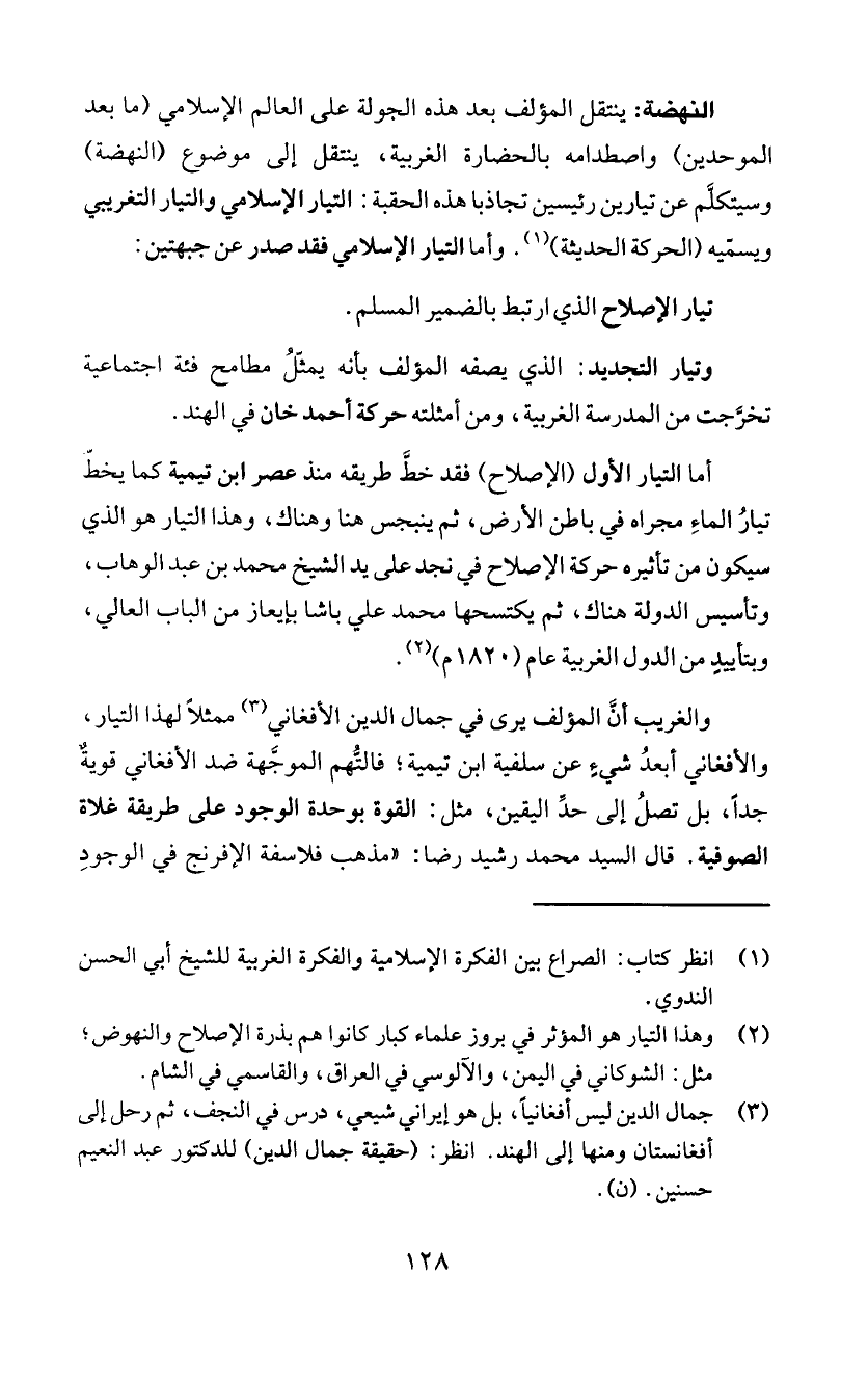 والغريب أن المؤلف يرى في جمال الدين الأفغاني (3) ممثلاً لهذا التيار،