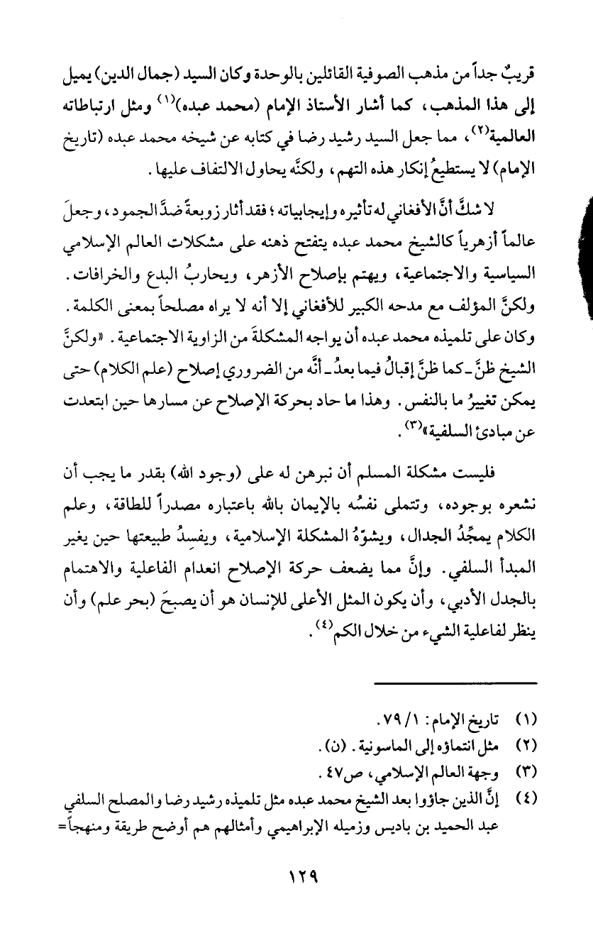 إن الذين جاؤوا بعد الشيخ محمد عبده مثل تلميذه رشيد رضا والمصلج السلفي