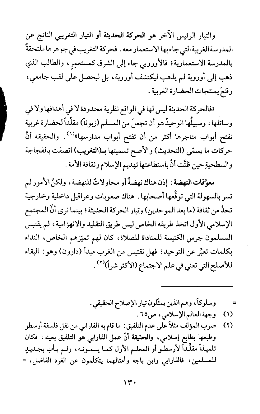 والتيار الرئيس الاخر هو الحركة الحديثة او التيار التغريبي الناتج عن