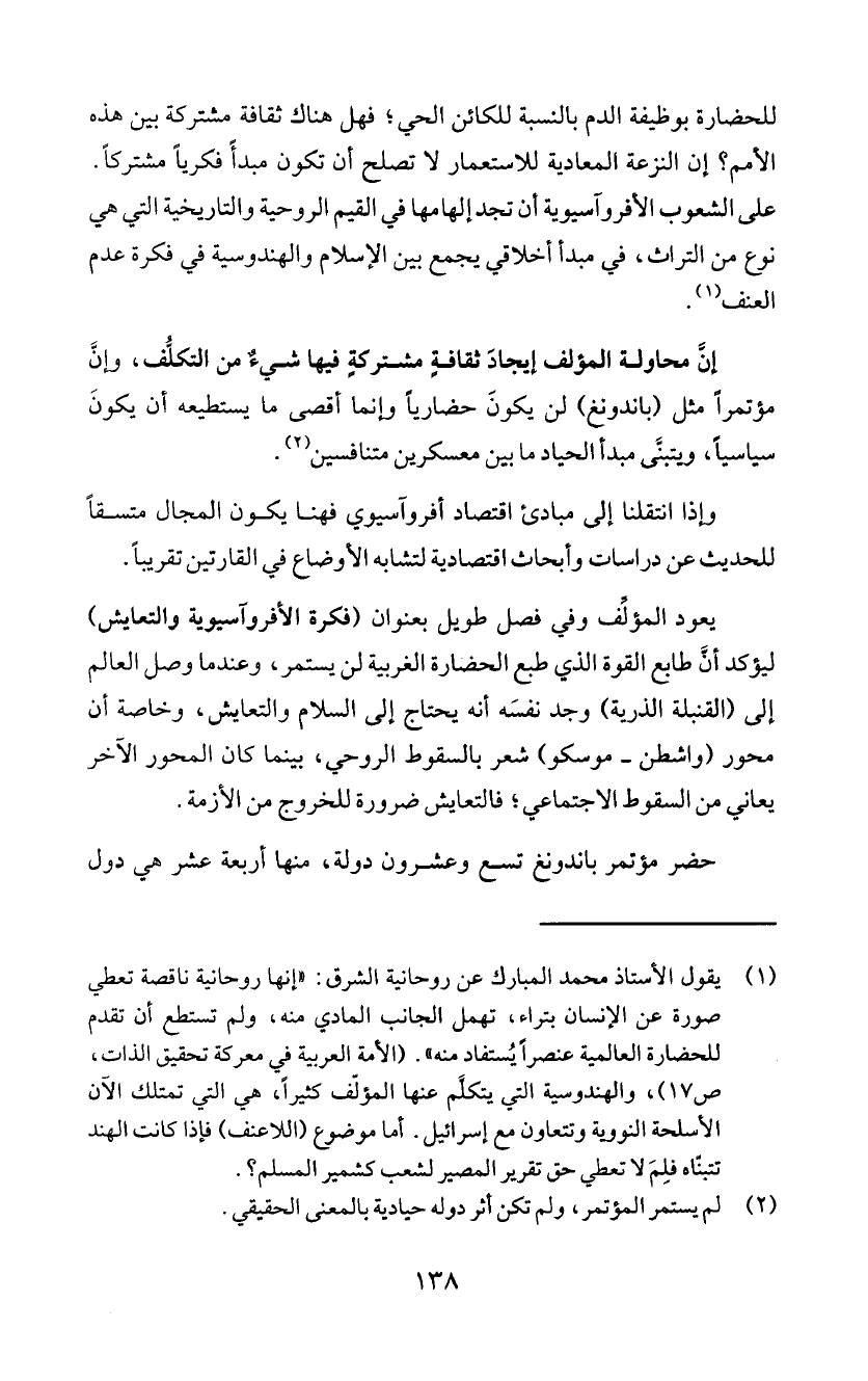يعود المؤئف وفي فصل طويل بعنوان (فكرة الأفروآسيوية والتعايش)