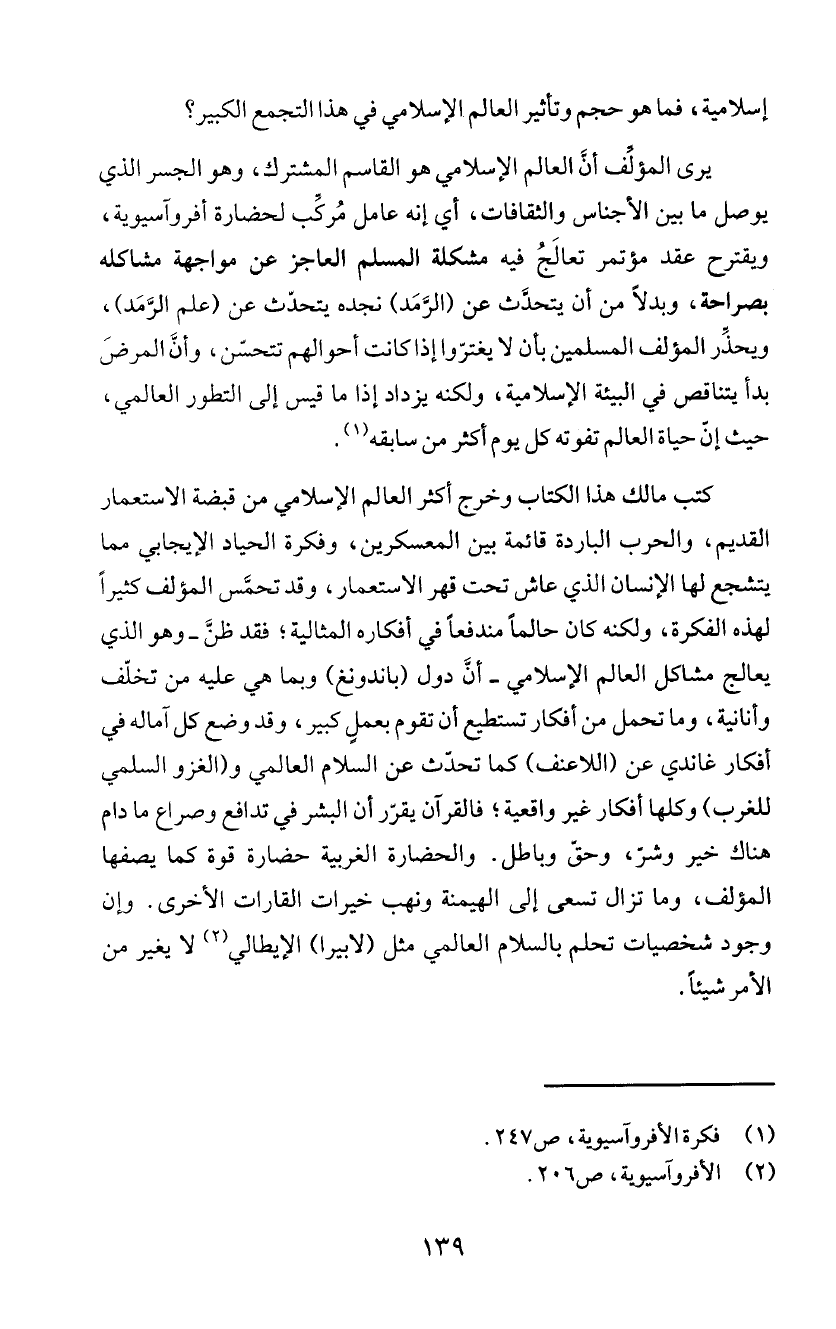 يرى المؤلّف ا! العالم الإسلامي هو القاسم المشترك، وهو الجسر الذي