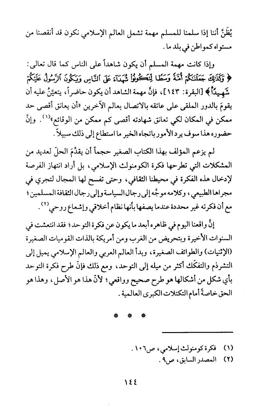 يُظَن اننا إذا سلمنا للمسلم مهمة تشمل العالم الإسلامي نكون قد أنقصنا من