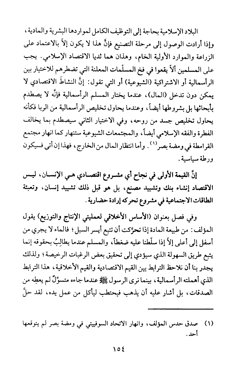 وفي فصل بعنوان (الأساس الأخلاقي لعمليتي الأنتاج والتوزيع) يقول