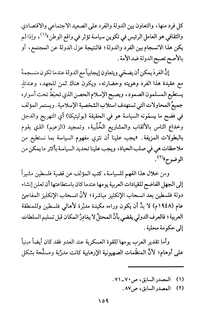 ومن خلال هذا الفهم للسياسة، كتب المؤلف عن قضية فلسطين مشيراً