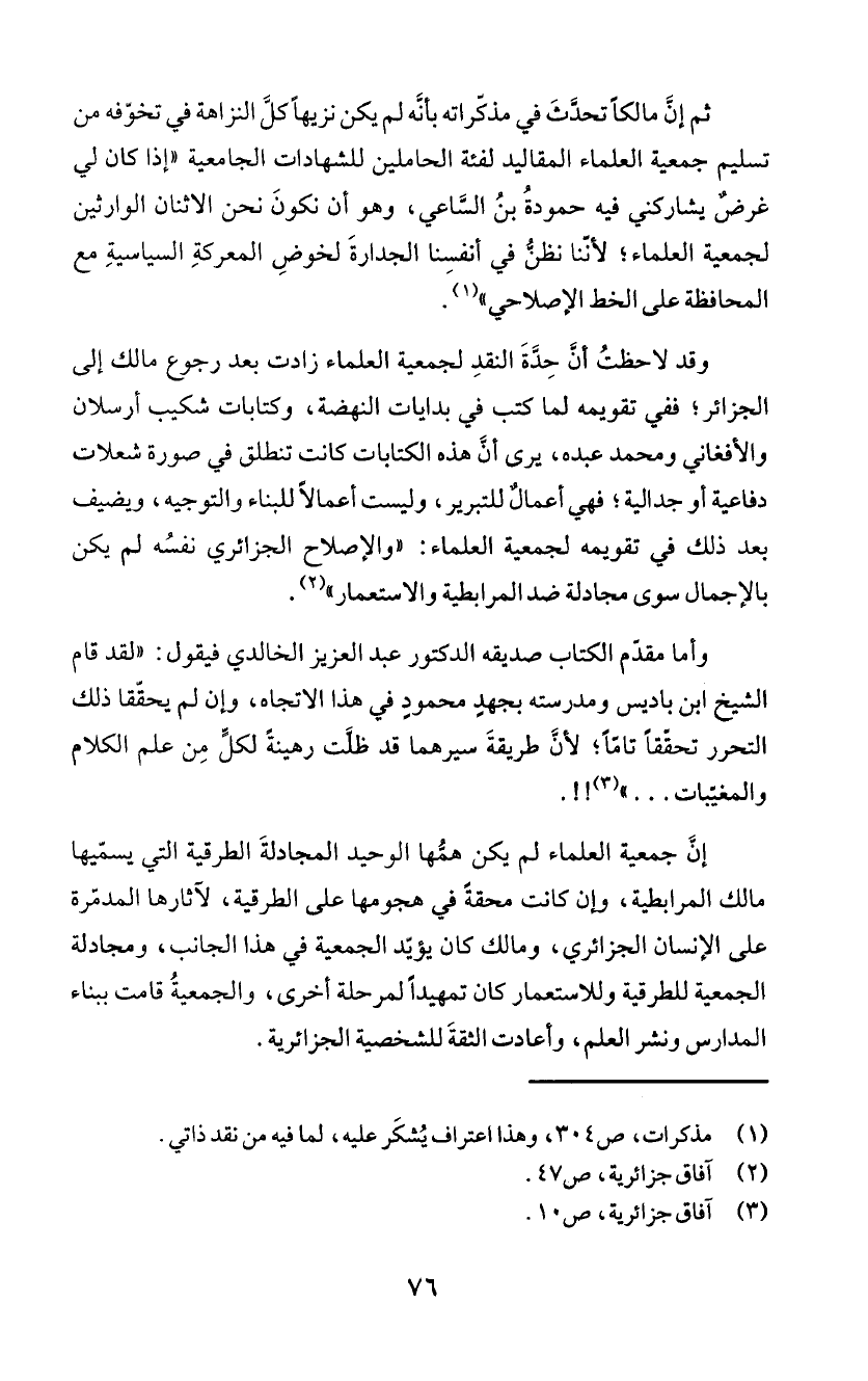 وقد لاحطتُ أنَ حِذَةَ النقدِ لجمعية العلماء زادت بعد رجوع مالك إلى