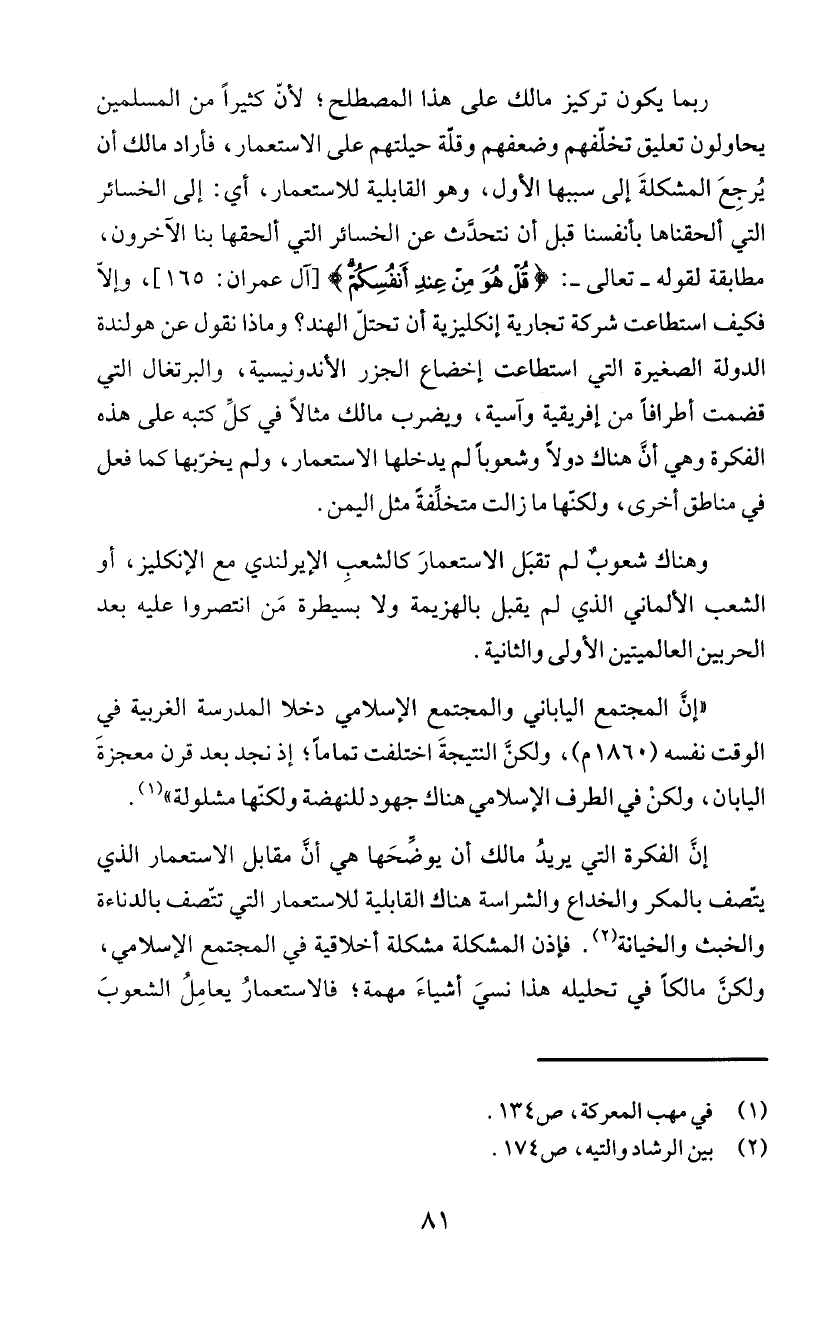 يحاولون تعليق تخففهم وضعفهم وقلّة حيلتهم على الاستعمار، فأراد مإلك أ ن