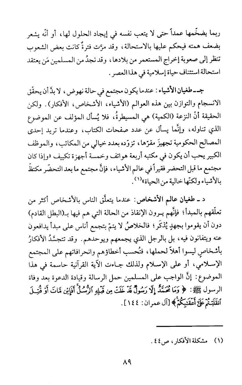 استحالة استئناف حياة إسلامية في هذا العصر.