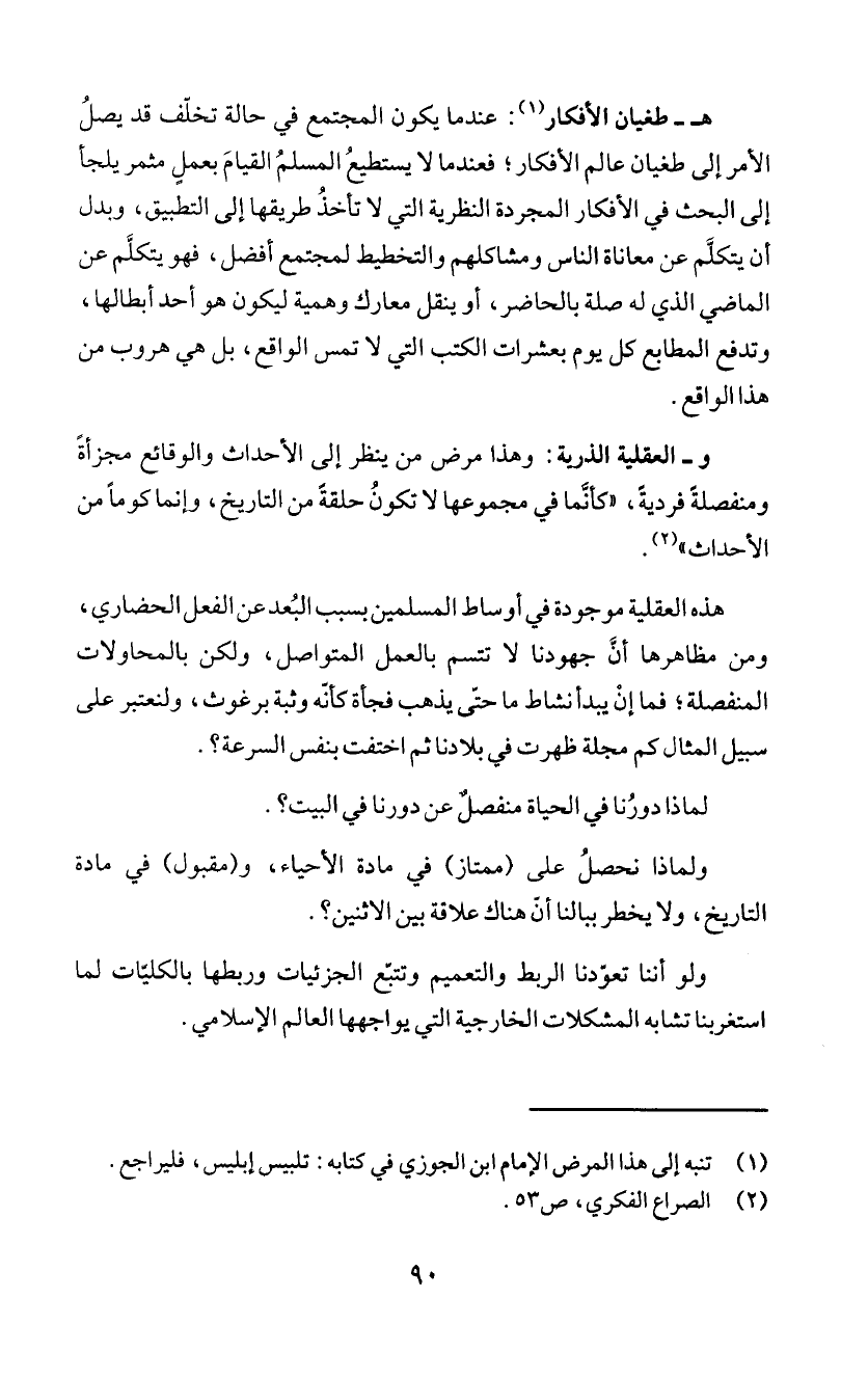 الأمر إلى طغيان عالم الأفكار؟ فعندما لا يستطيعُ المسلمُ القيامَ بعملٍ مثمر يلجأ