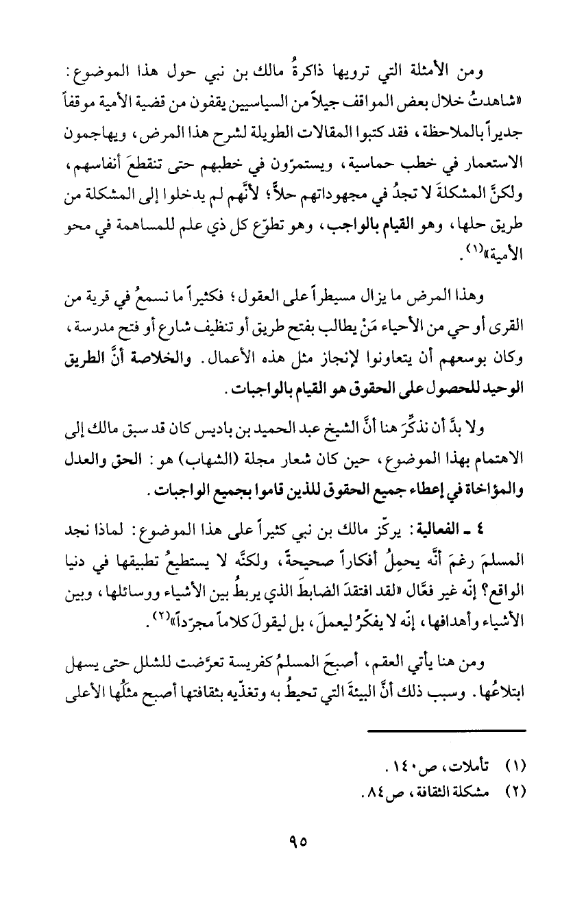 4 - الفعالية: يركز مالك بن نبي كثيراً على هذا الموضوع: لماذا نجد