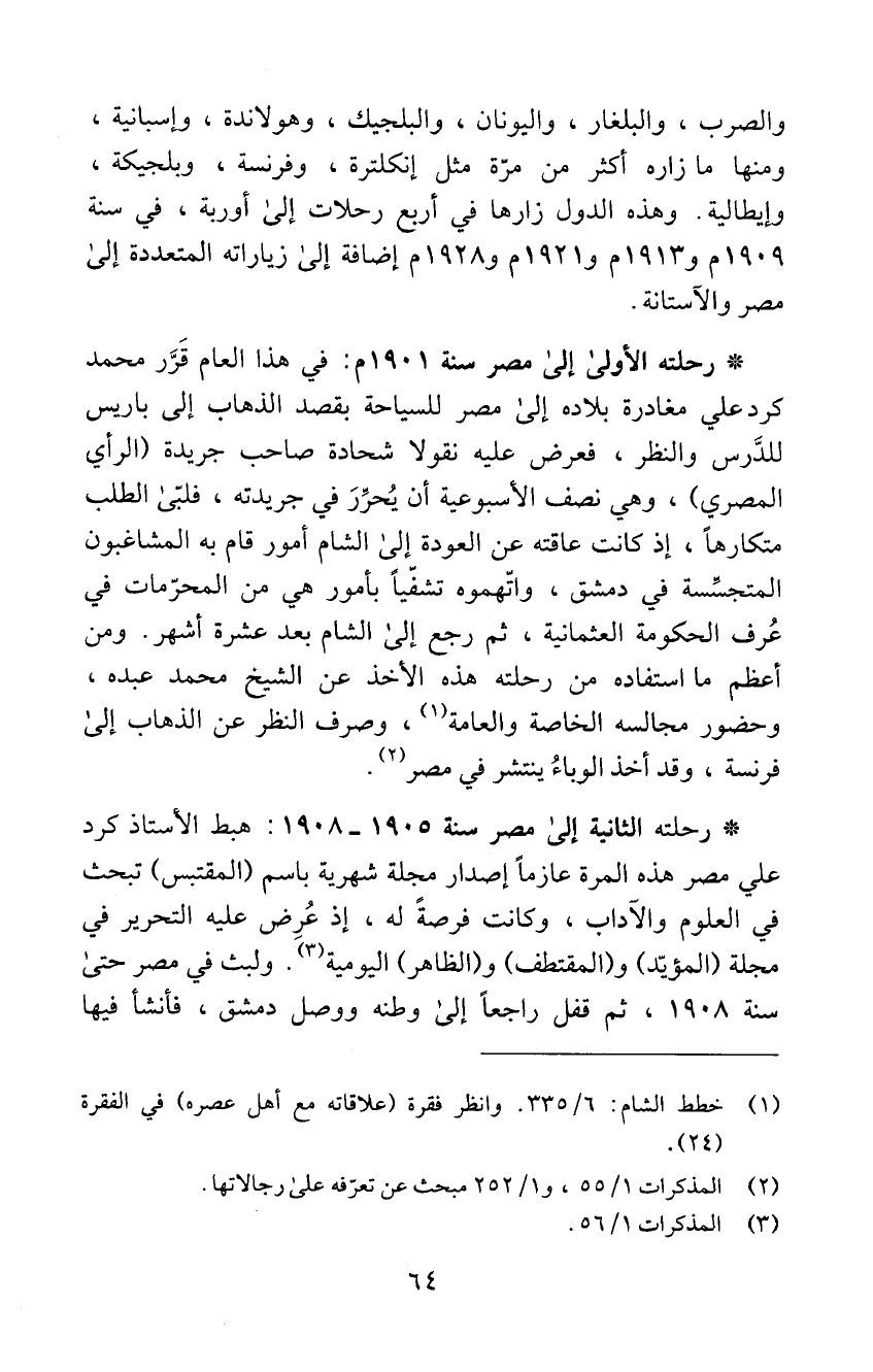 كردعلي مغادرة بلاده إلى مصر للسياحة بقصد الذهاب إلى باريس