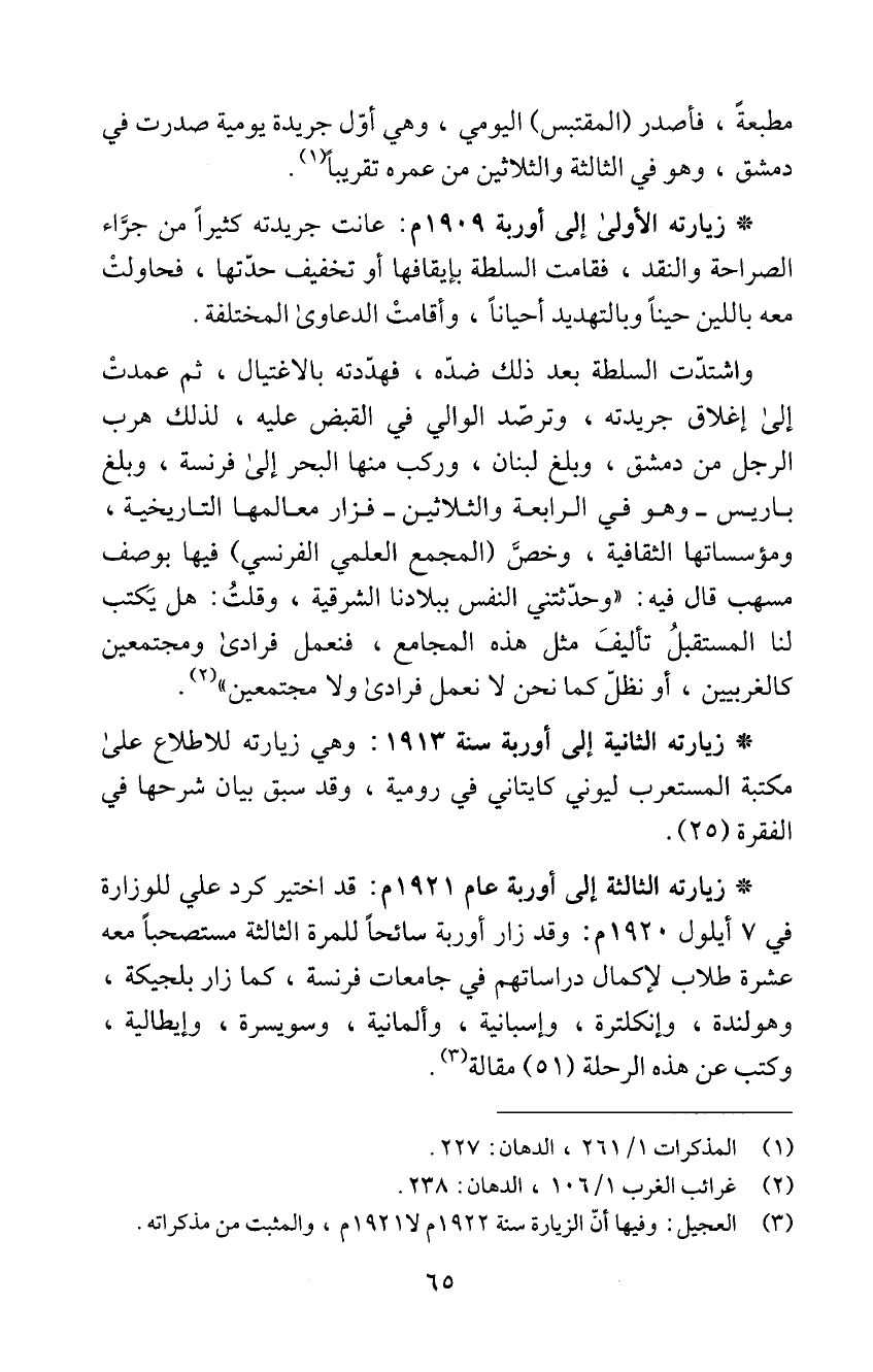 ! زيارته الأولى إلى أوربة 1909 م: عانت جريدته كثيراً من جرَّاء