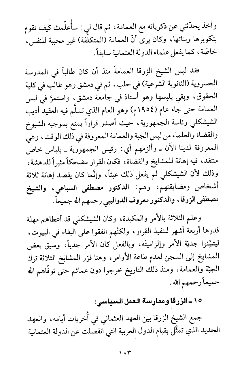 فقد لبس الشيخ الزرقا العمامةَ منذ أن كان طالبأ في المدرسة