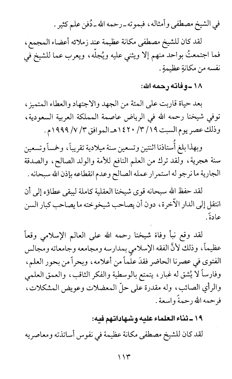 في الشيخ مصطفى وأمثاله، فبموته - رحمه اللّه -دُفن علم كثير0