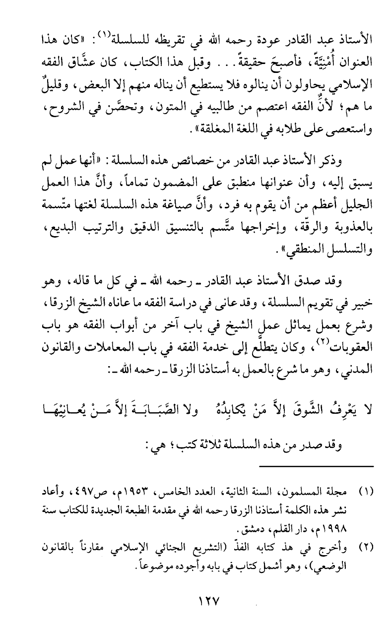 الأستاذ عبد الفادر عودة رحمه اللّه في تقريطه للسلسلة (1): "كان هذا