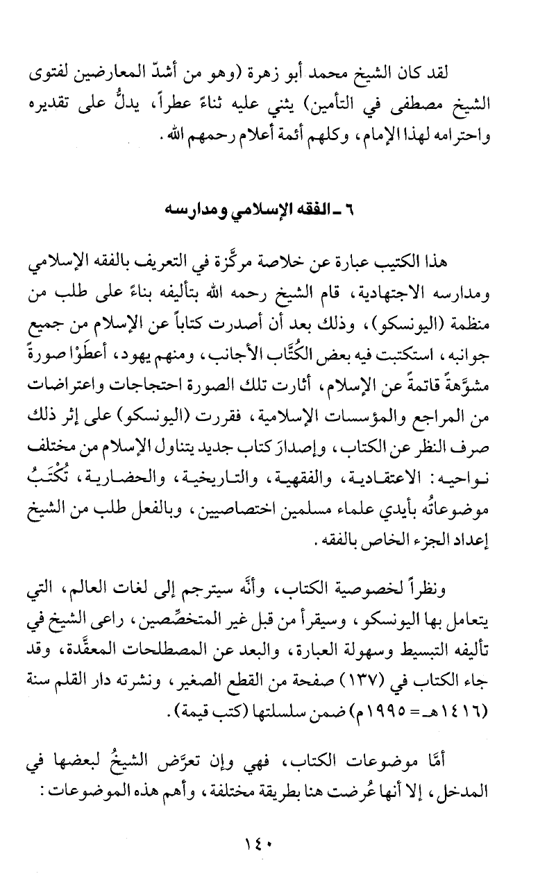 منظمة (اليونسكو)، وذلك بعد ان اصدرت كتاباً عن الإسلام من جميع