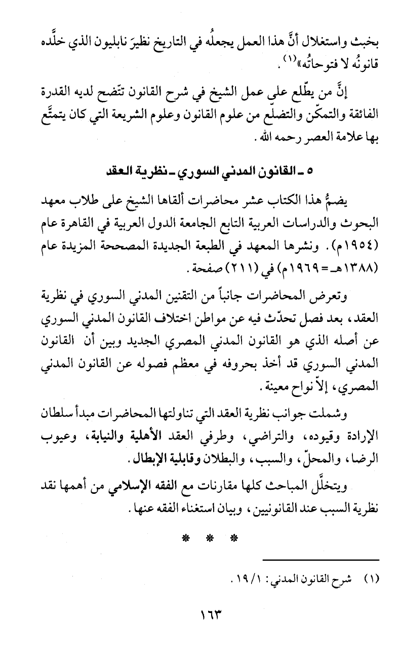 وتعرض المحاضرات جانباً من التقنين المدني السوري في نظرية