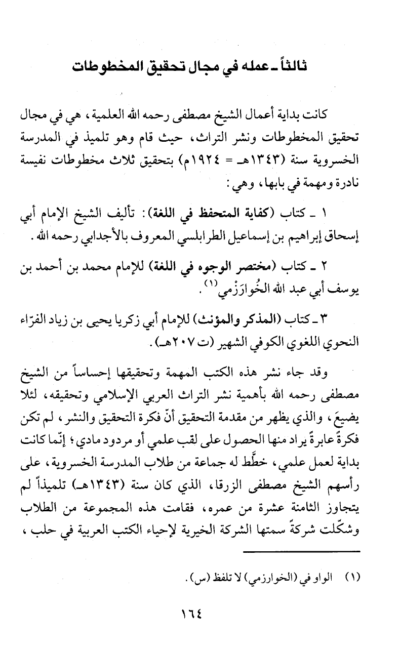 مصطفى رحمه اللّه بأهمية نشر التراث العربي الإسلامي وتحقيفه، لئلا