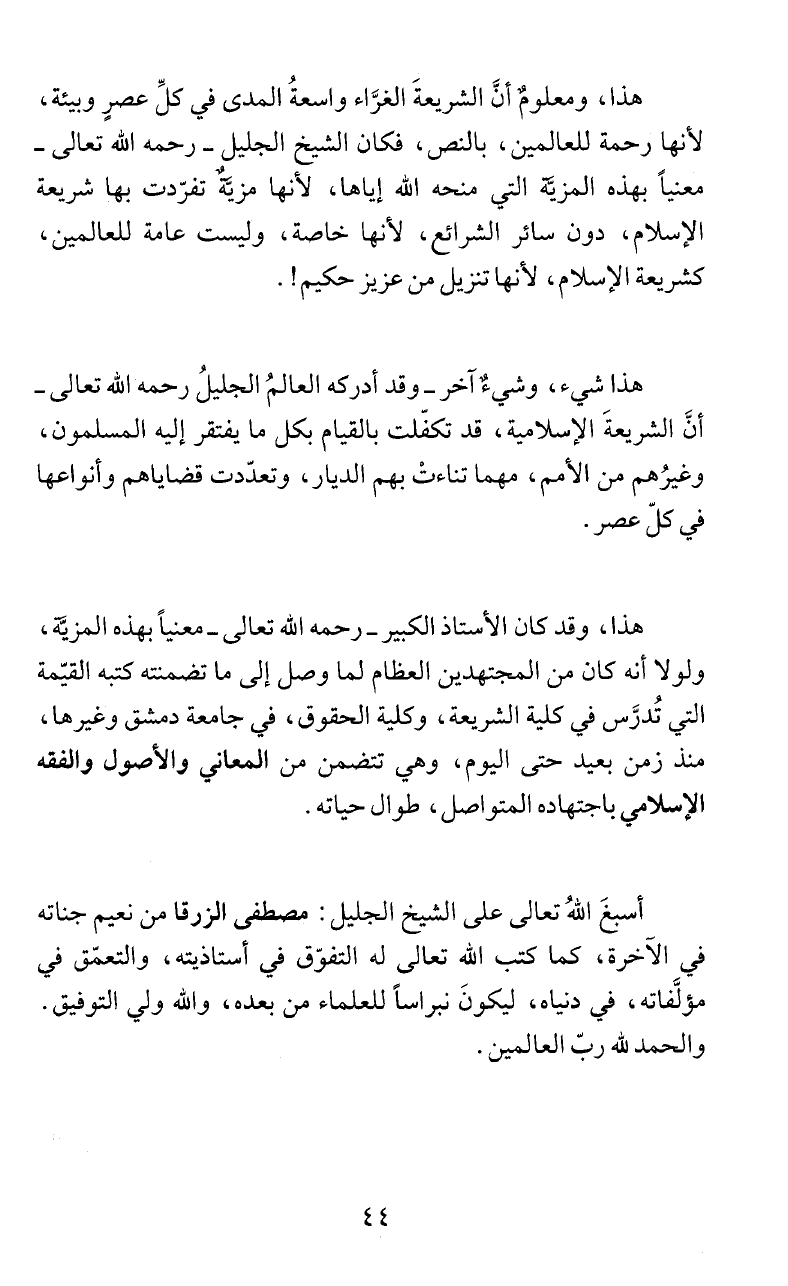 أسبغَ اللّهُ تعالى على الشيخ الجليل: مصطفى الزرقا من نعيم جناته