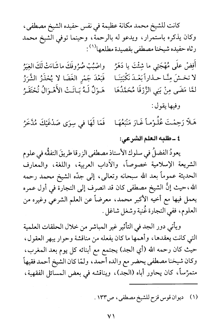 يعودُ الفضلُ في سلوك الأستاذ مصطفى الزرقا طريقَ التففُه في علوم