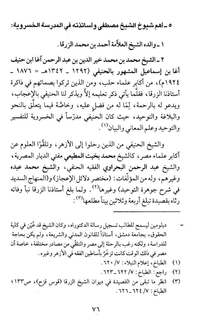 5 - أهم شيوخ الشيخ مصطفى وأساتذته في المدرسة الخسروية: