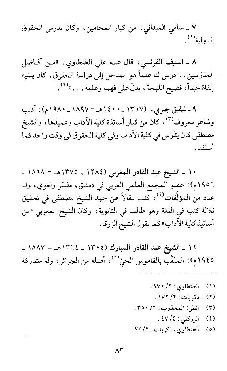 أساتيذ كلية الاَداب " كما يقول الشيخ الزرقا.