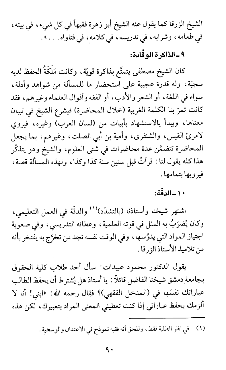 الشيخ الزرقا كما يفول! عنه الشيخ أبو زهرة فقيهاً في كل شيء، في بيته،