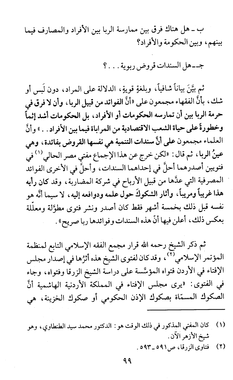 بعكس ذلك، أعلن فيها أنّ هذه السندات وفوائدها ربا صريج ".