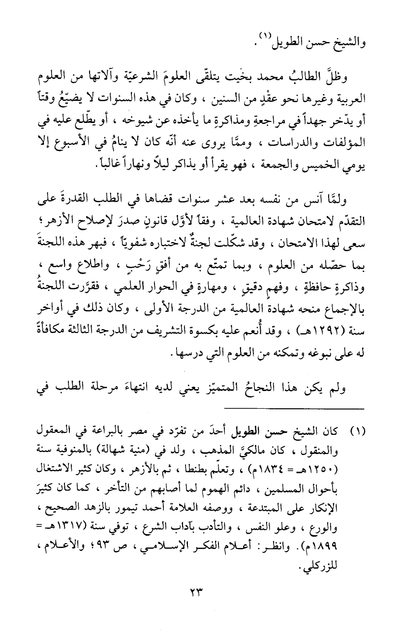 كان الشيخ حسن الطويل أحدَ من تفرّد في مصر بالبراعة في المعقول