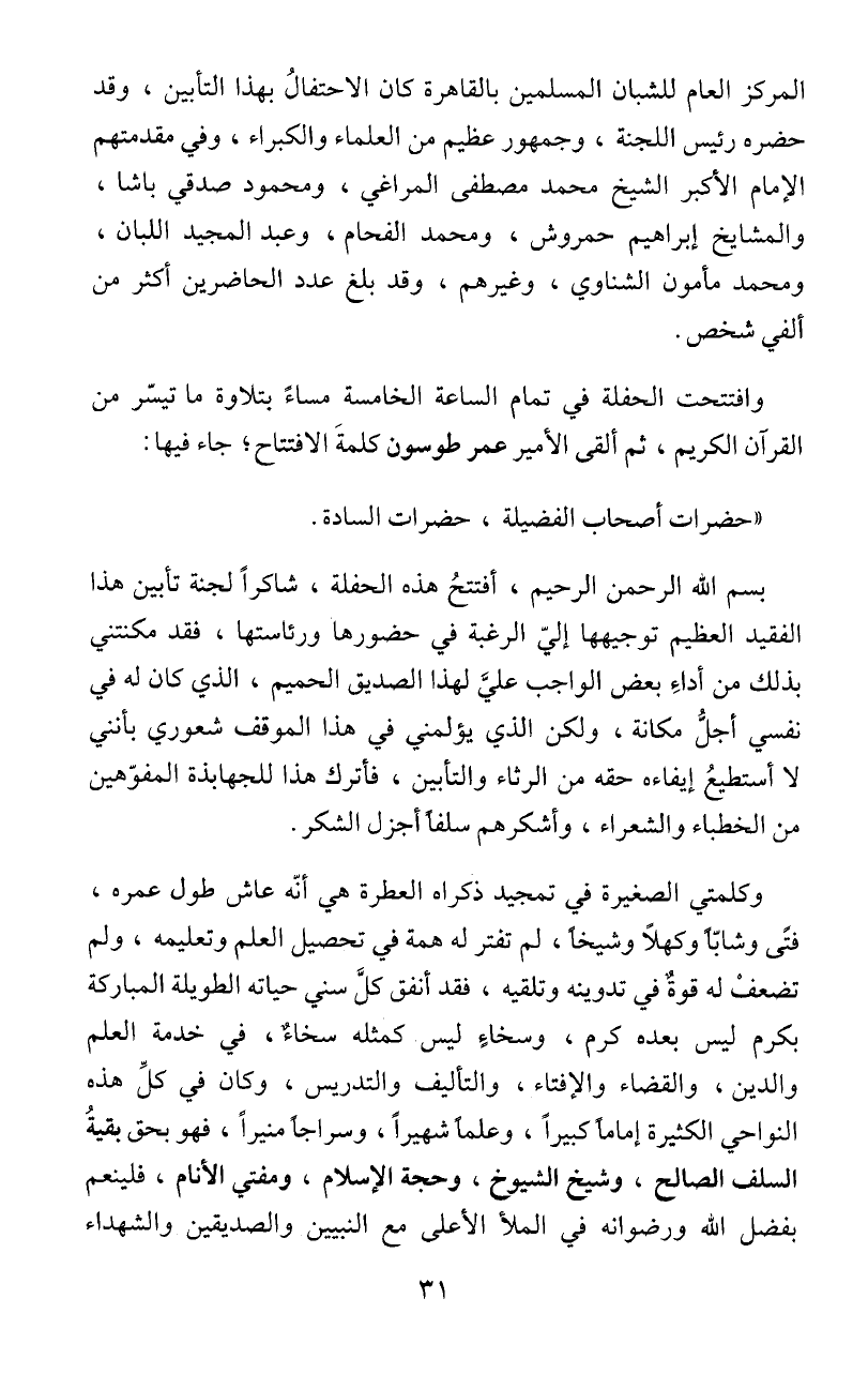 حضره رئيس اللجنة، وجمهور عظيم من العلماء والكبراء، وفي مقدمتهم