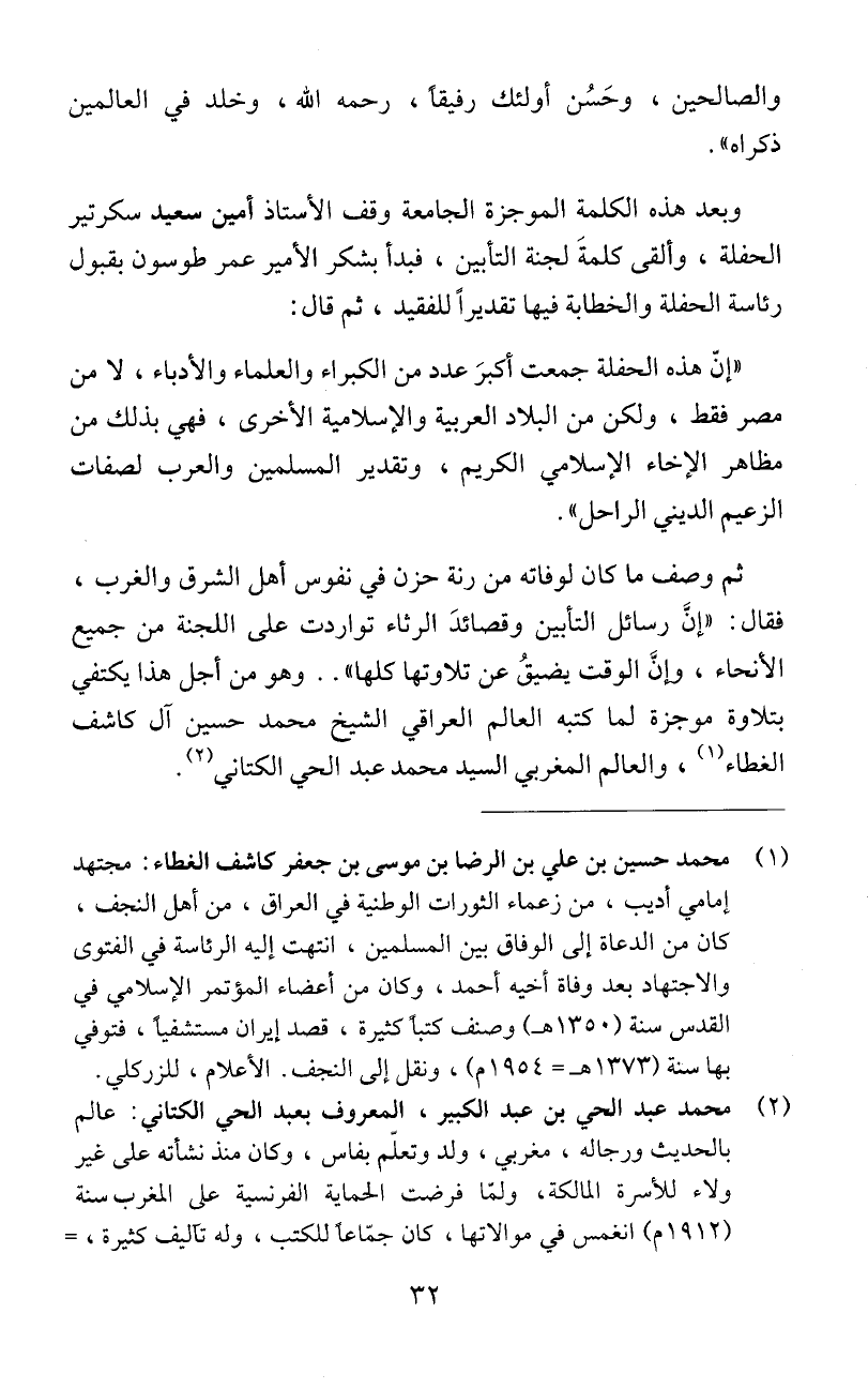 وبعد هذه الكلمة الموجزة الجامعة وقف الأستاذ أمين سعيد سكرتير