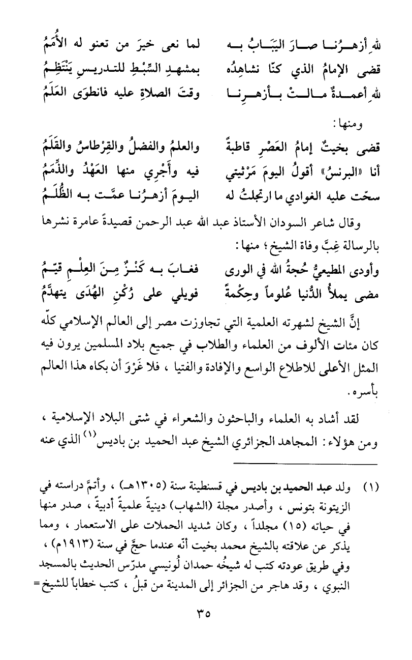 ومن هؤلاء: المجاهد الجزائري الشيخ عبد الحميد بن باديس (1) الذي عنه