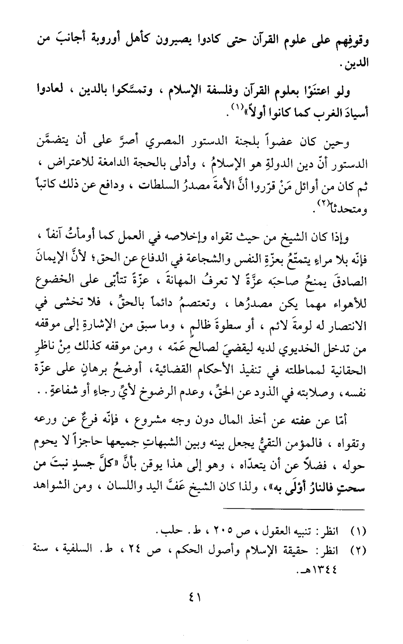 انظر: حقيقة الإسلام وأصول الحكم، ص 24، ط. السلفية، سنة