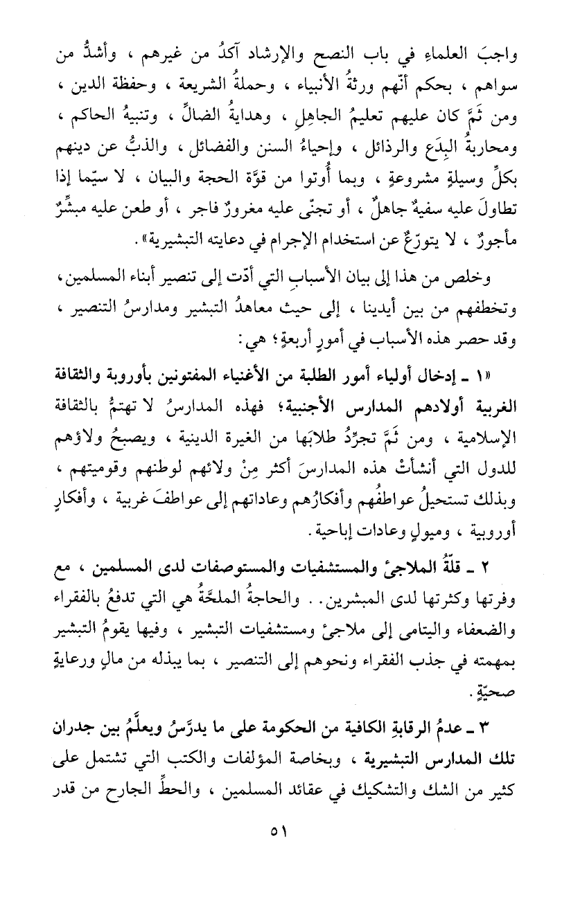 وخلص من هذا إلى بيان الأسبابِ التي أدّت إلى تنصير أبناء المسلمين،