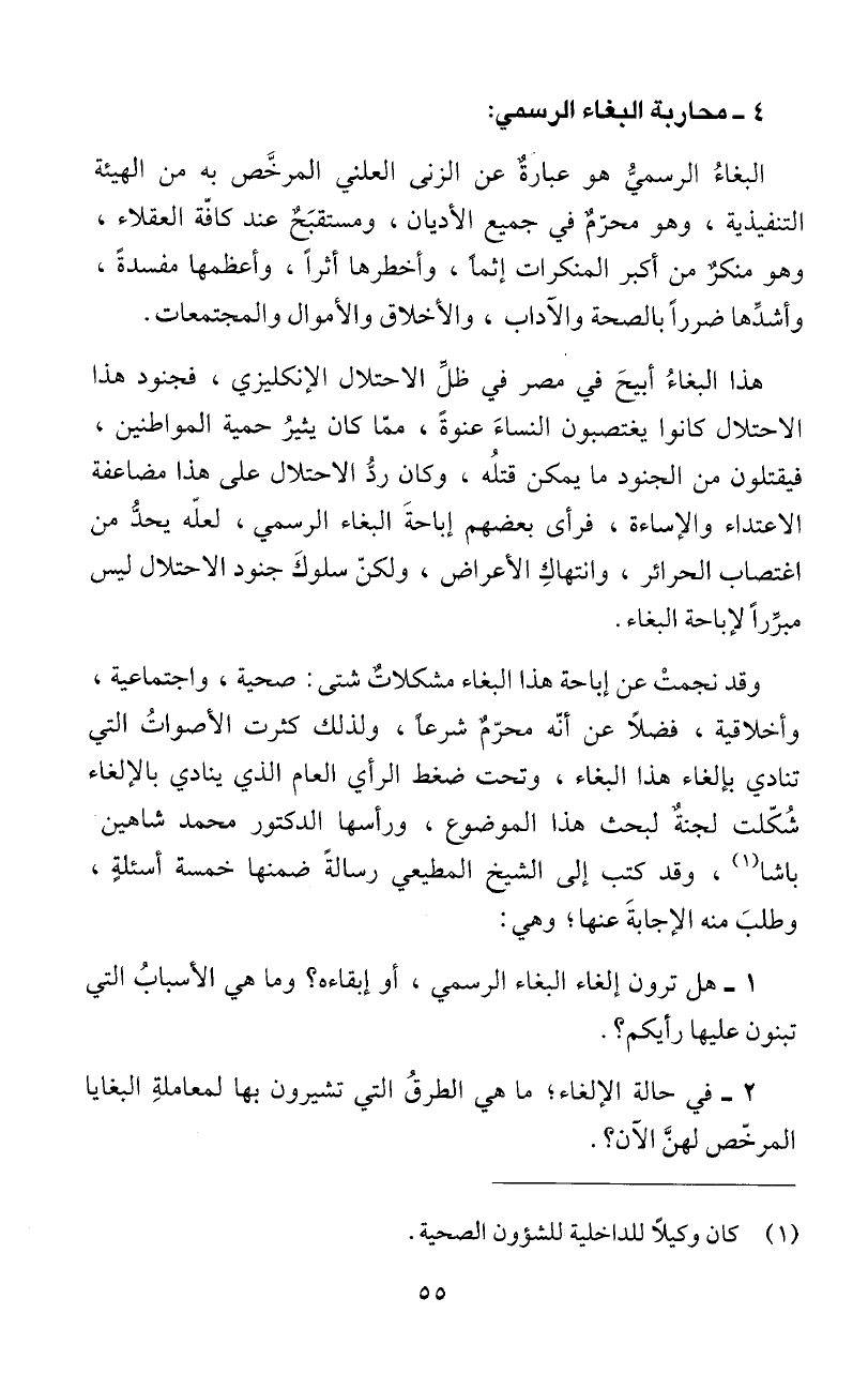 البغاءُ الرسميُّ هو عبار! عن الزنى العلني المرخَّص به من الهيئة