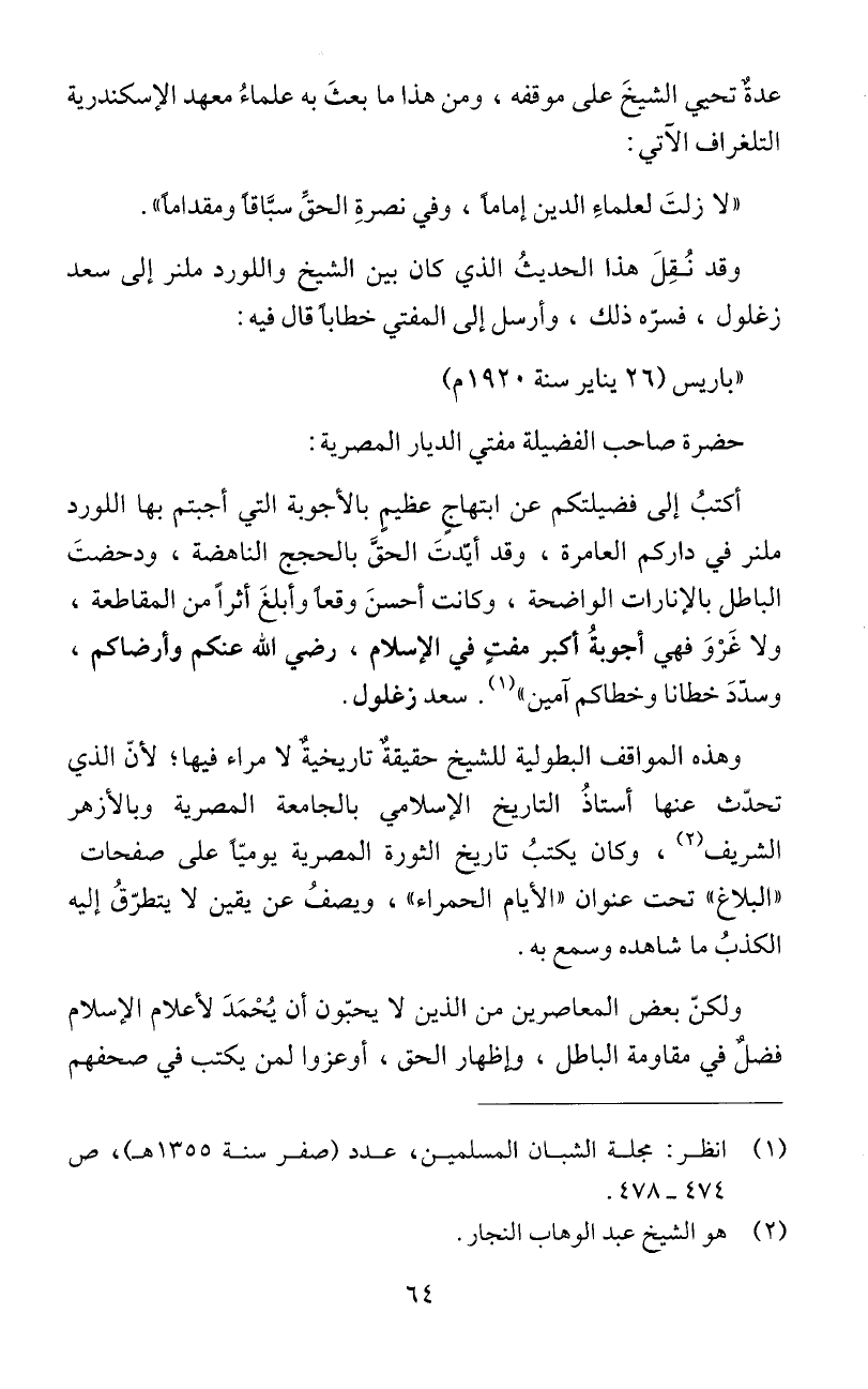 زغلول، فسرّ 5 ذلك، وأرسل إلى المفتي خطابأ قال فيه: