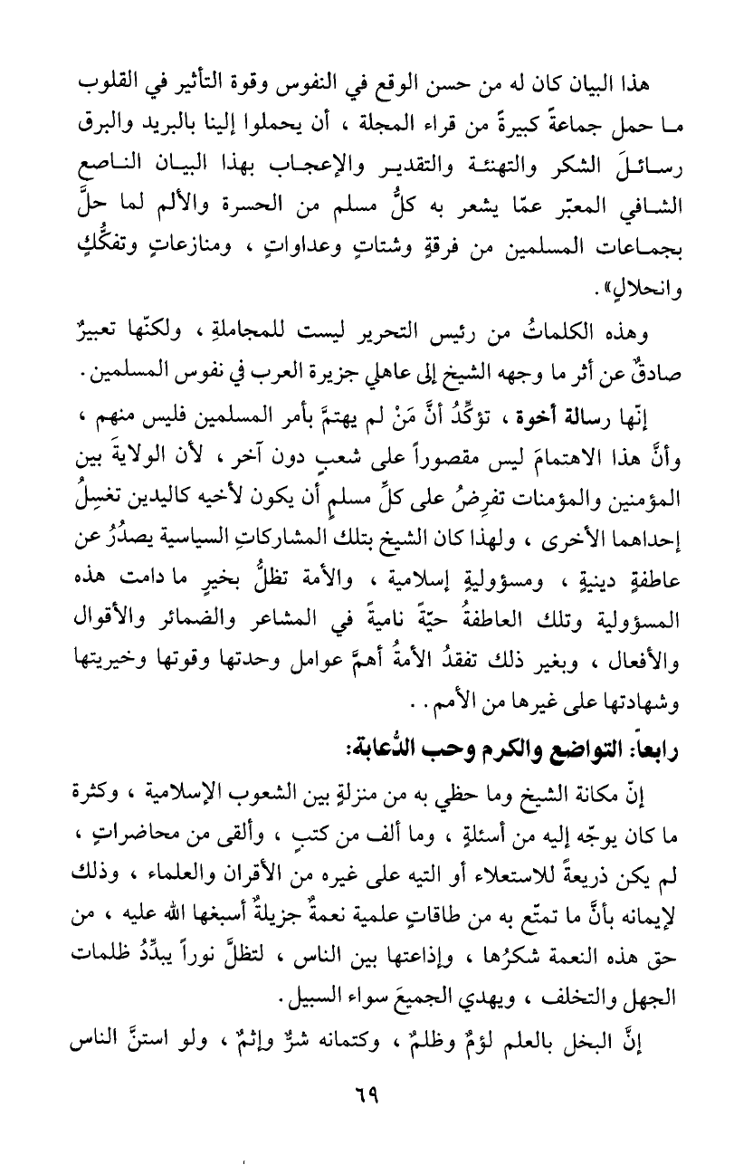 هذا البيان كان له من حسن الوقع في النفوس وقوة التأثير في القلوب