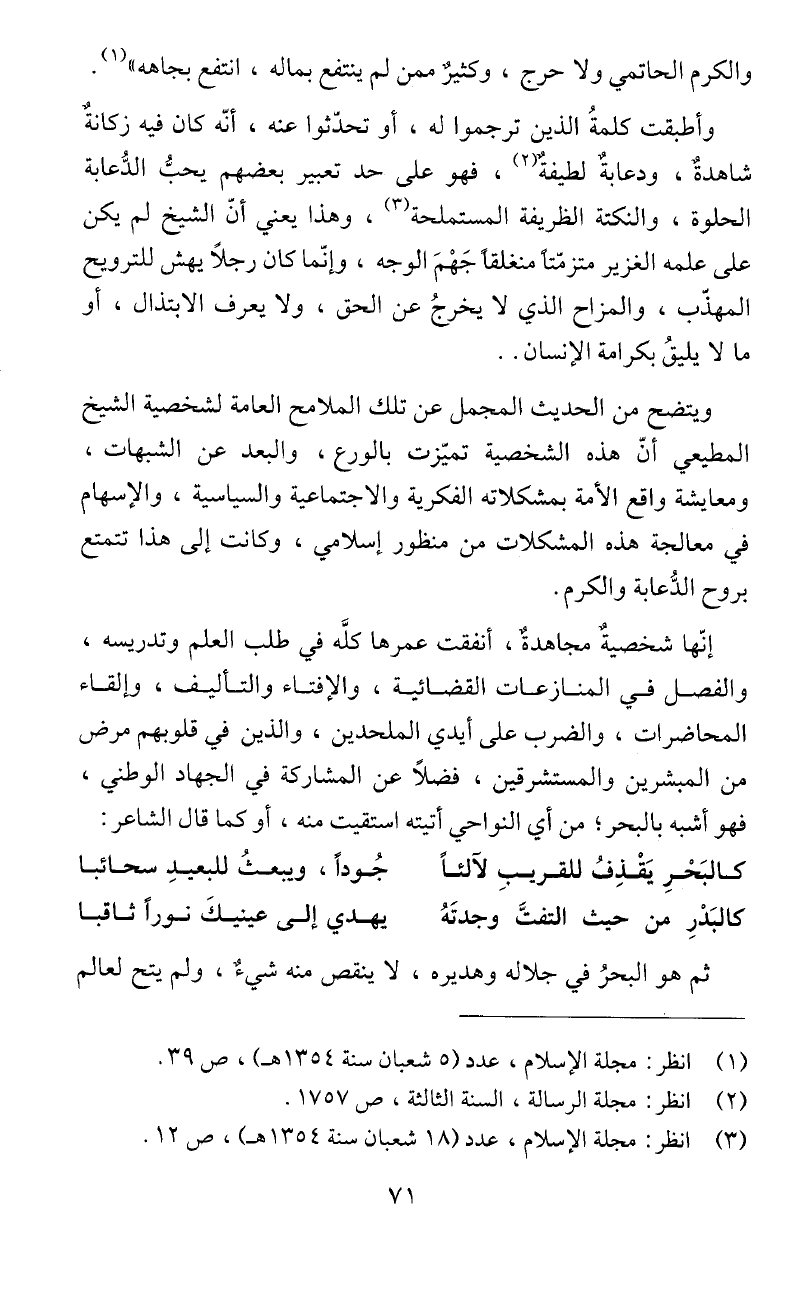 (1) انظر: مجلة الإسلام، عدد (5 شعبان سنة 354 أهـ)، ص 39.