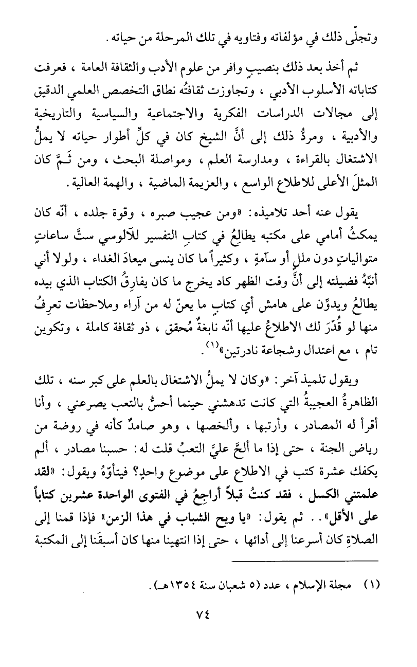 (1) مجلة الإسلام، عدد (5 شعبان سنة 354 اهـ).