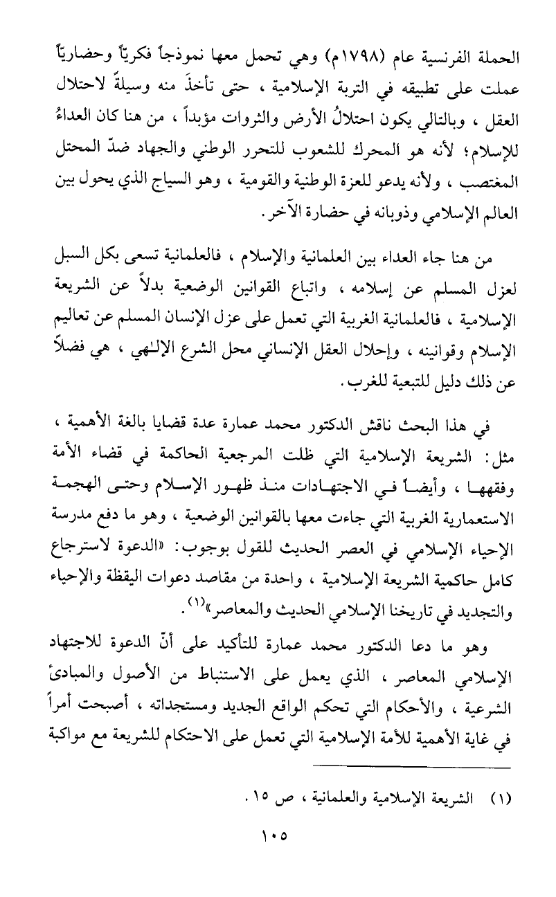 (1) الشريعة الإسلامية والعلمانية، ص 15.
