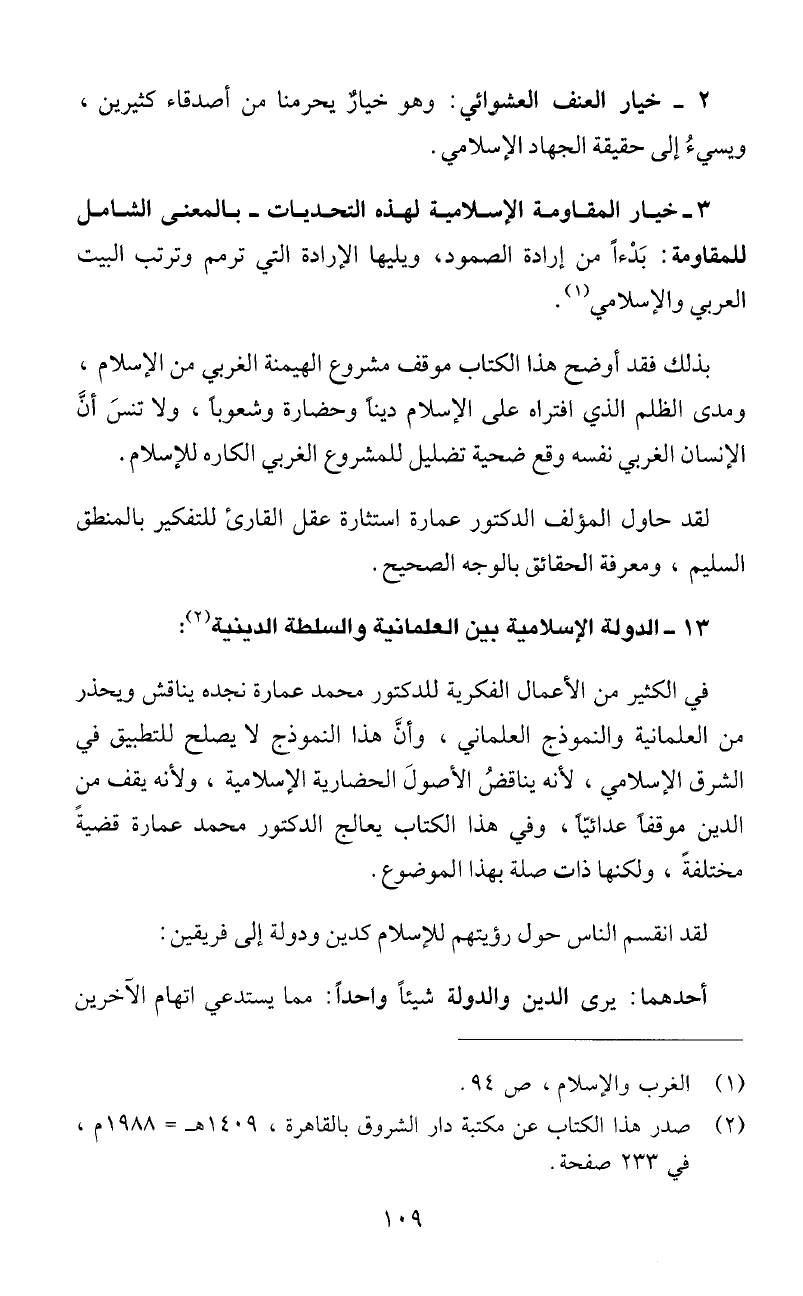 الدين موقفأ عدائيّأ، وفي هذا الكتاب يعالج الدكتور محمد عمارة قضيةً