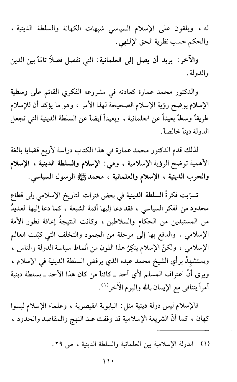 (1) الدولة الإسلامية بين العلمانية والسلطة الدينية، ص 29.
