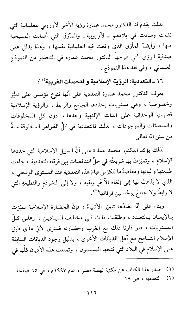16 - التعددية: الرؤية الإسلامية والتحديات الغربية (1):