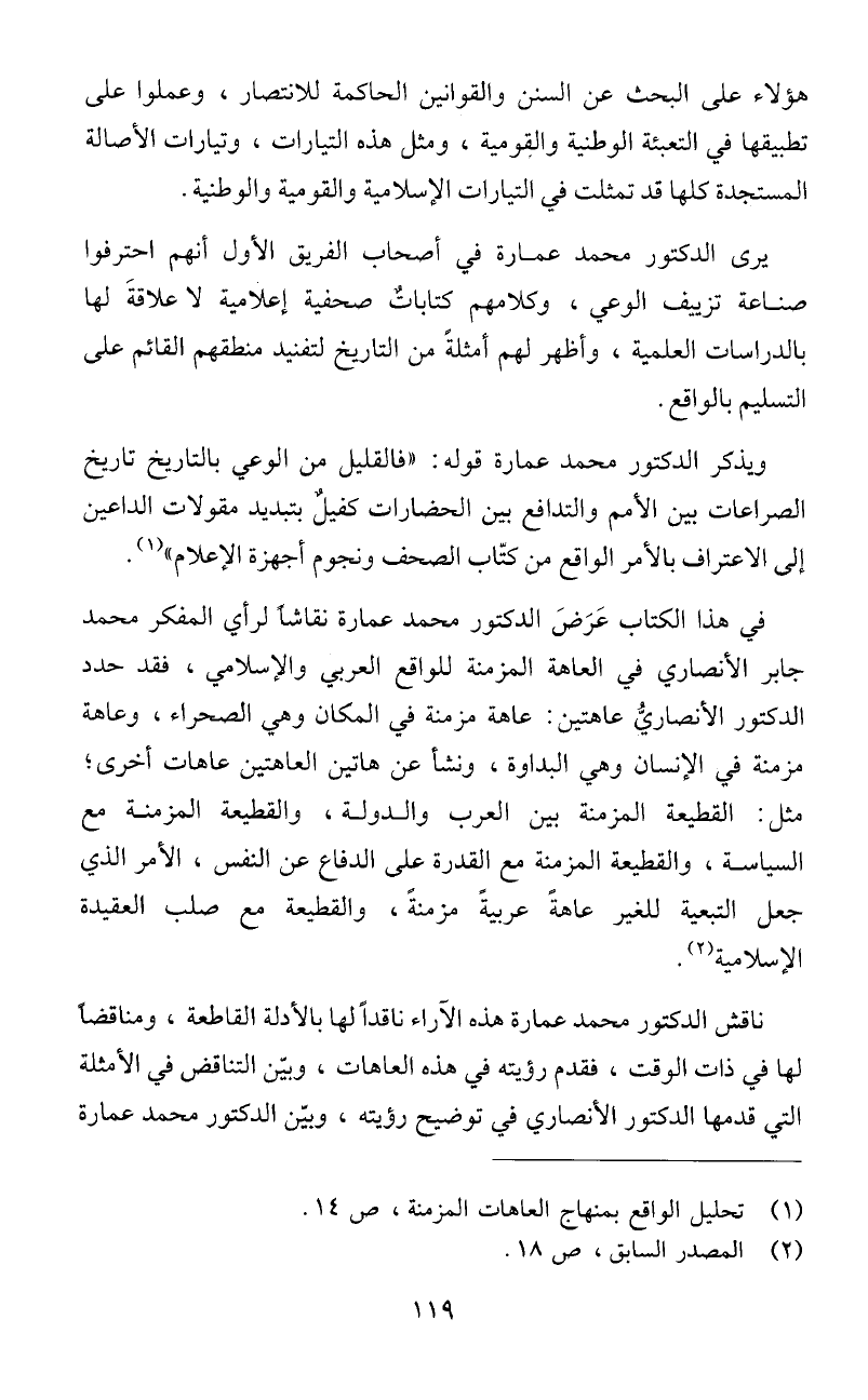 في هذا الكتاب عَرَضَ الدكتور محمد عمارة نقاشأ لرأي المفكر محمد