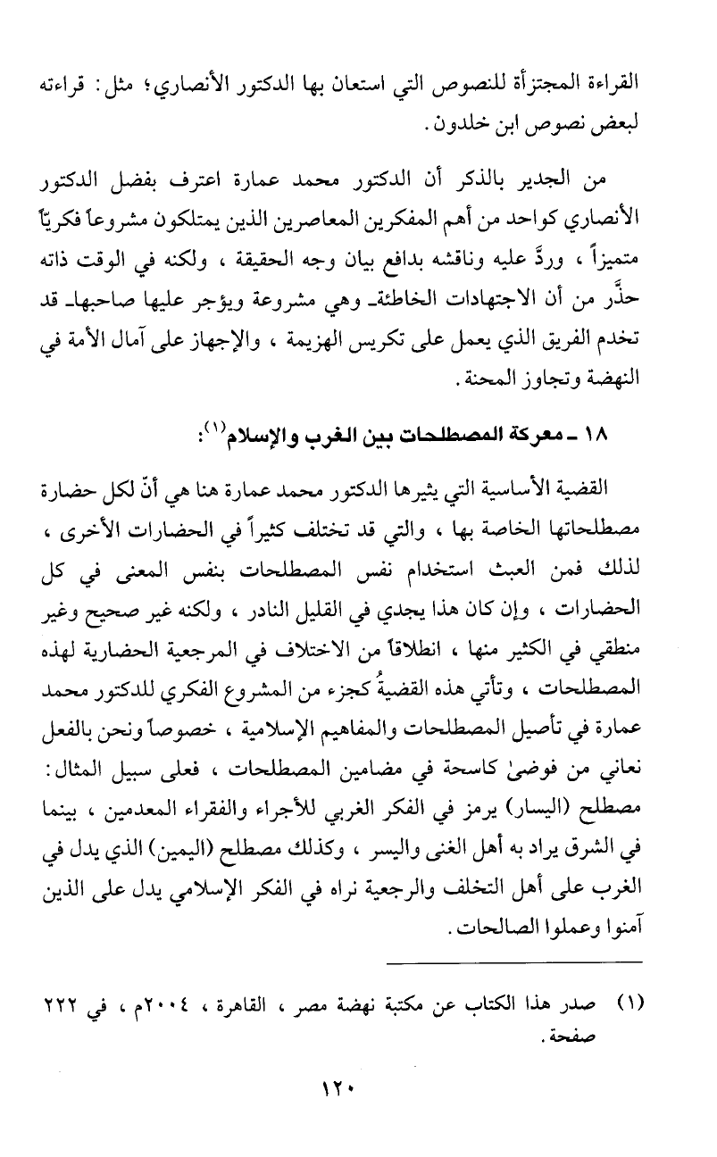 عمارة في تأصيل المصطلحات والمفاهيم الإسلامية، خصوصأ ونحن بالفعل