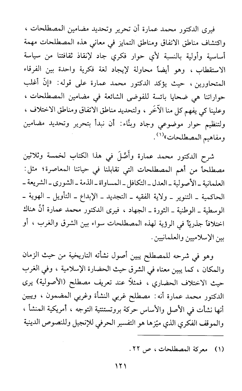 المتحاورين، حيث يؤكد الدكتور محمد عمارة على قوله: "إنّ أغلب