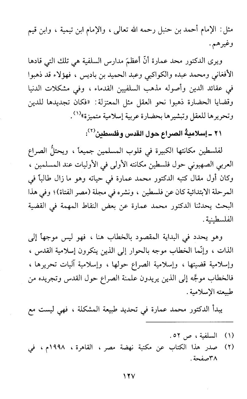 يبدأ الدكتور محمد عمارة في تحديد طبيعة المشكلة، فهي ليست مع